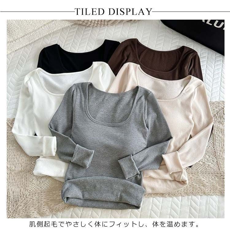あったかインナー カップ付き リブ トップス レディース 長袖 ブラトップ 暖かい スクエアネック インナーシャツ 秋冬 防寒 肌着 下着 婦人 女性用 保温 ヒートテック あったか ストレッチ性 着 perfmax 371