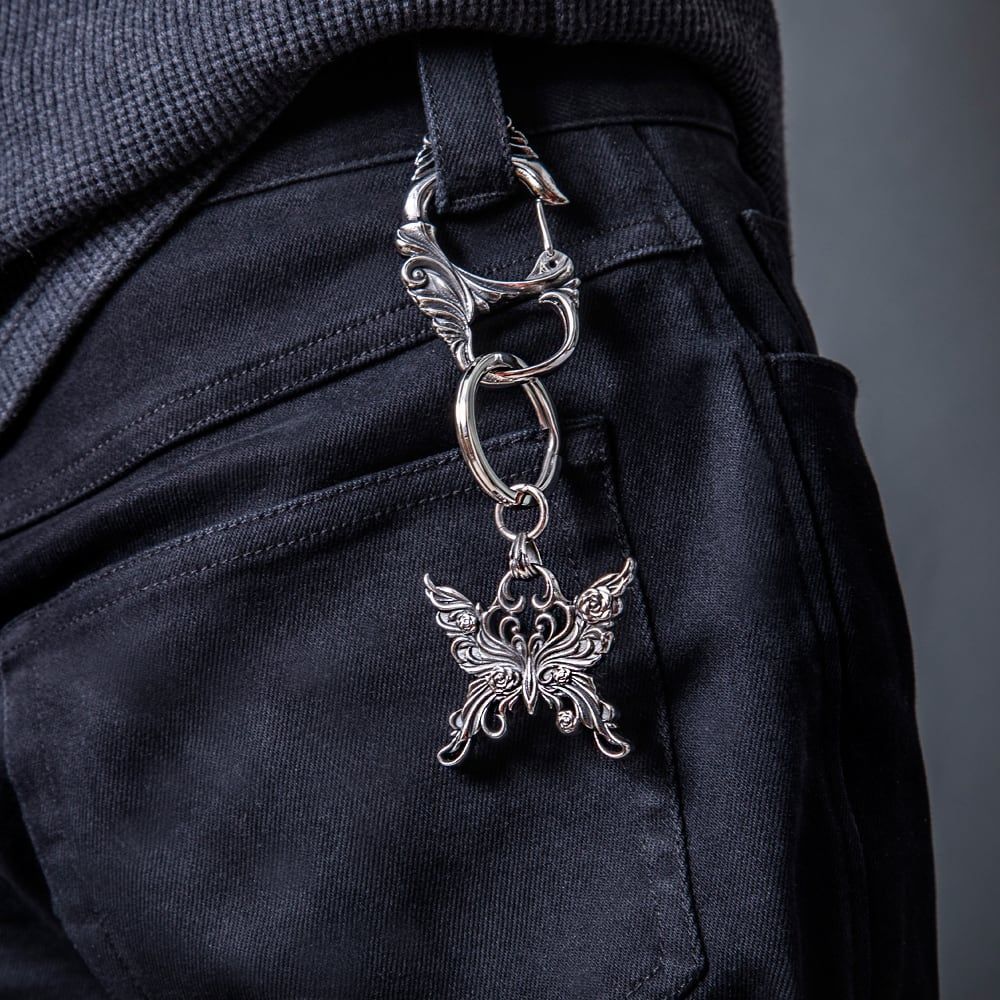 Crafted from durable stainless steel, it balances strength with a polished finish that feels almost jewel-like. The richly modeled surfaces and crisp detailing evoke the care of atelier workmanship, bringing depth and character that elevate any look—on denim loops, bags, or belt hooks. More than practical, it’s a sleek accessory that complements other butterfly-themed pieces for a cohesive style story.