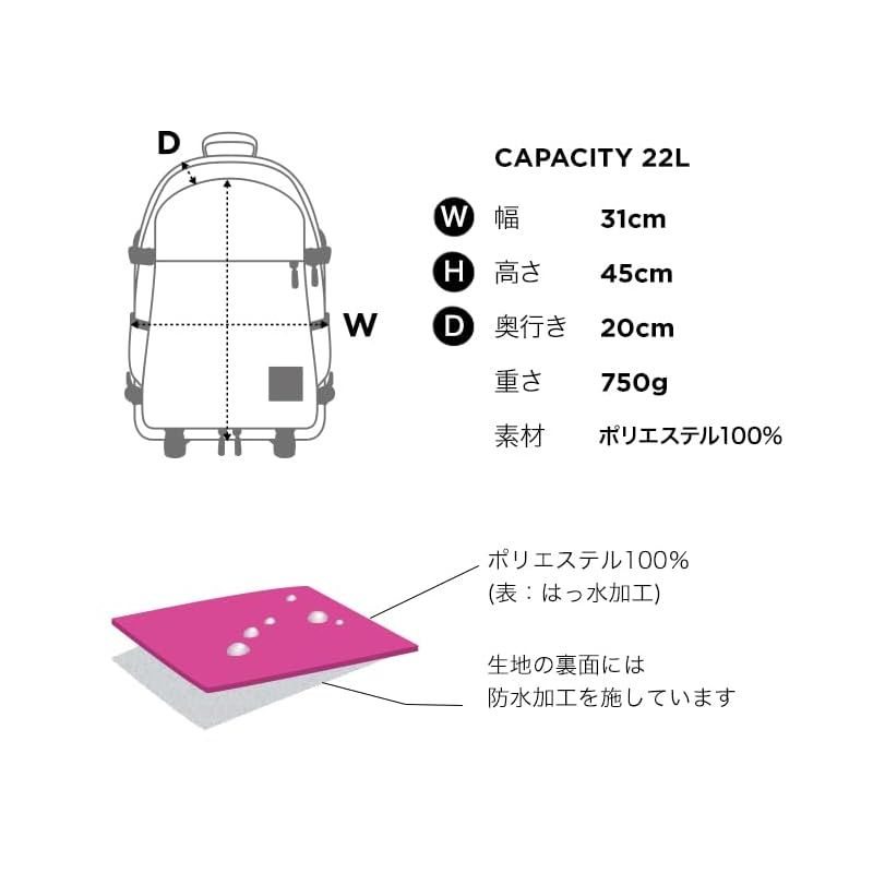 容量22L。シューズ収納ポケットが備わった機能的なバックパックです。